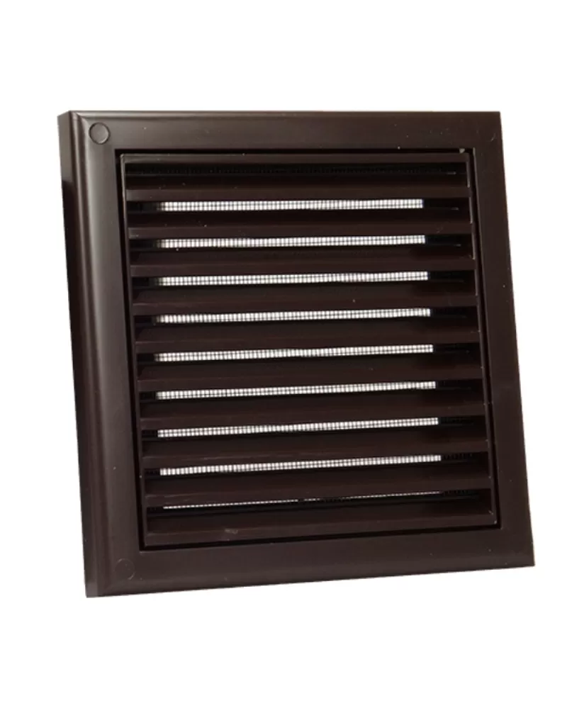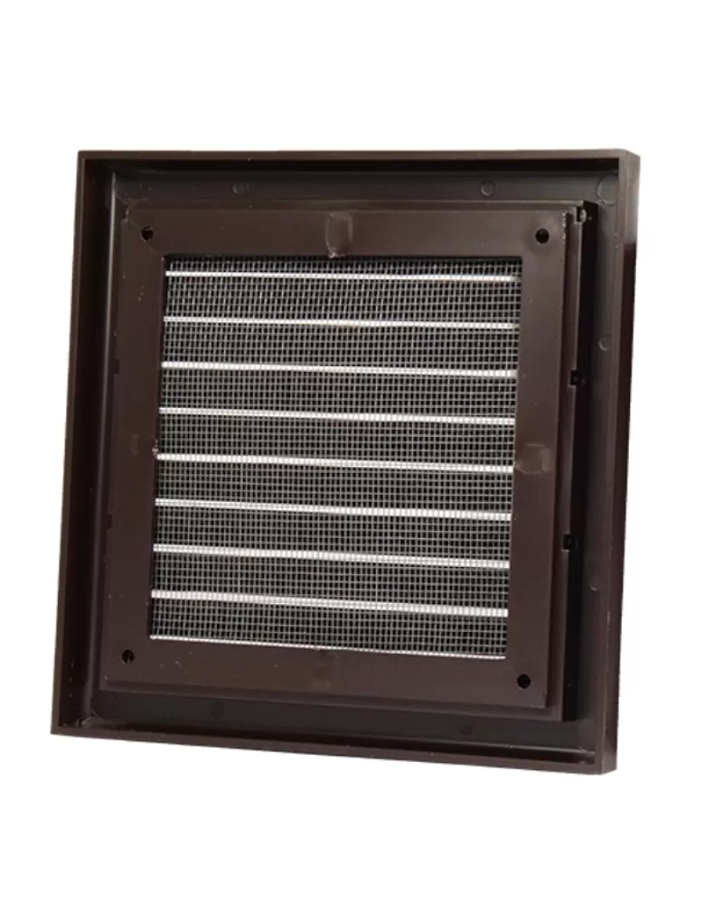 • Plastová větrací mřížka se síťkou proti hmyzu 154x154 mm bez příruby v hnědé barvě je vhodná jak pro větrání, tak i nasávání