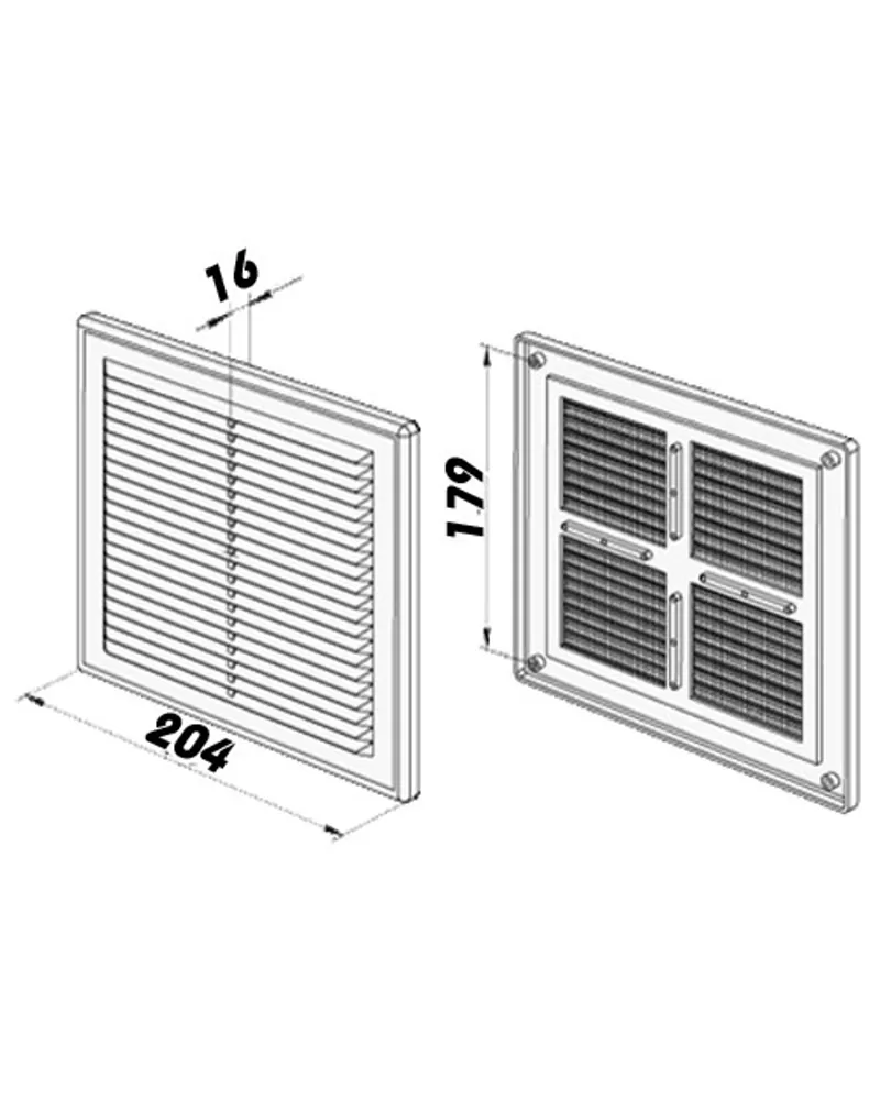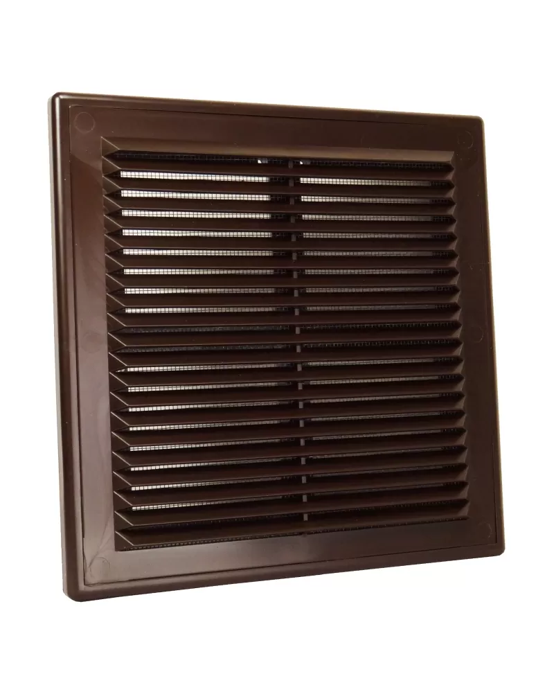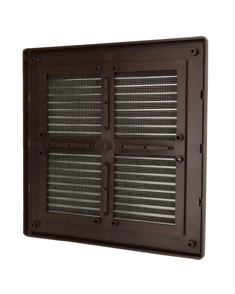• Plastová větrací mřížka se síťkou proti hmyzu 204x204 mm bez příruby v hnědé barvě je vhodná jak pro větrání, tak i nasávání