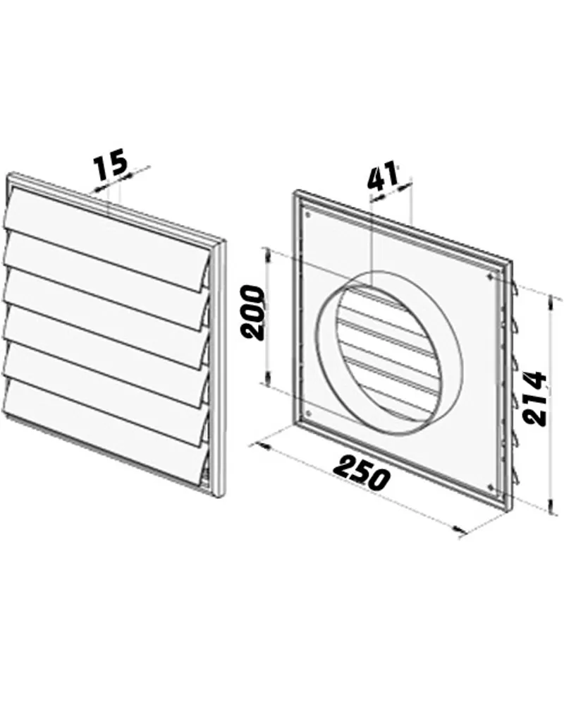 PVC větrací mřížka s přírubou a samotížnou žaluzií, 250x250 mm / O 200 mm, bílá DALAP 3250 Větrací mřížka bílá 250x250 mm s přírubou O 200 mm je… Celý popis