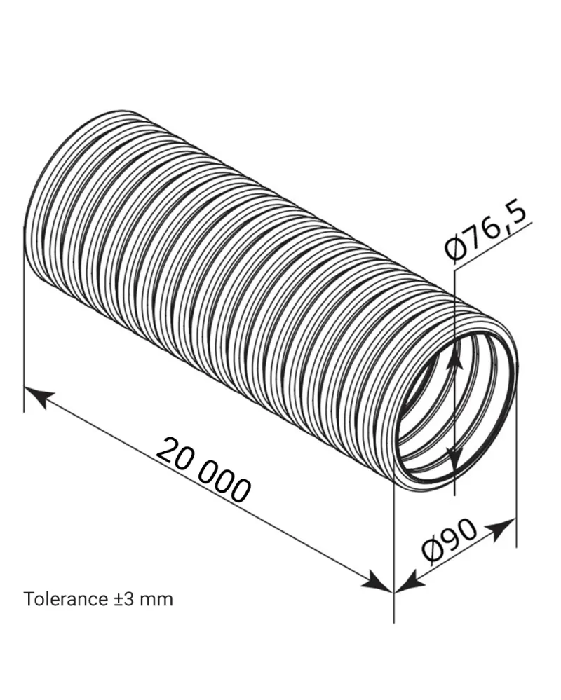 Ohebné antistatické i antibakteriální potrubí O 90 mm, délka 20 m DALAP 197588
