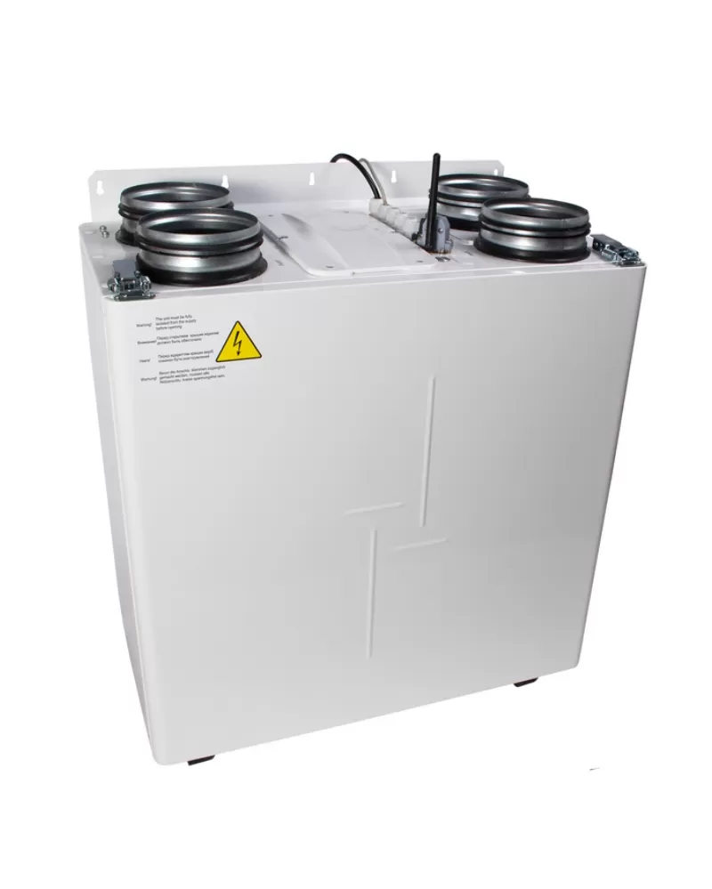 • Jednotka je vybavena protiproudým polystyrenovým tepelným výměníkem. V chladném období je teplo odváděného vzduchu zachyceno a přeneseno do proudu přiváděného vzduchu, což snižuje tepelné ztráty generované větráním. To může vést ke tvorbě kondenzátu, který je shromažďován ve speciální drenážní pánvi a vypouštěn do kanalizačního systému. V teplém období se teplo okolního vzduchu přenáší do proudu odpadního vzduchu. To umožňuje značné snížení teploty přiváděného vzduchu, což zase snižuje zatížení klimatizace