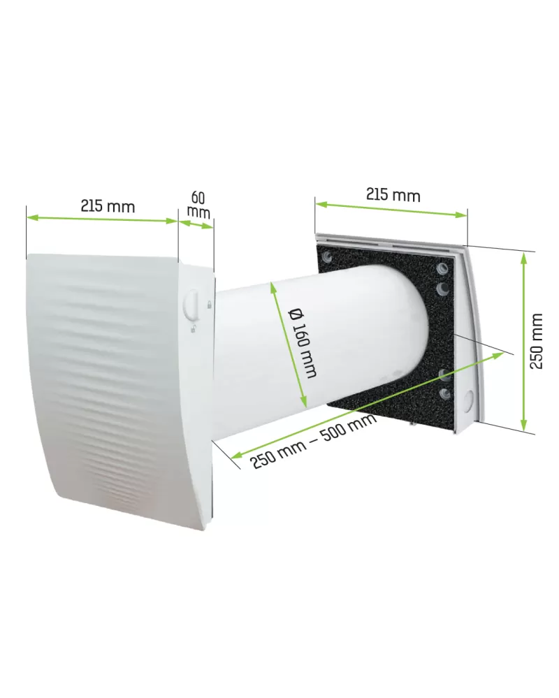 • Pokojovou rekuperaci Dalap ZEPHIR SIMPLE snadno nainstalujete do zdi v místnosti pomocí pevného potrubí, zapojíte a můžete ji hned použít