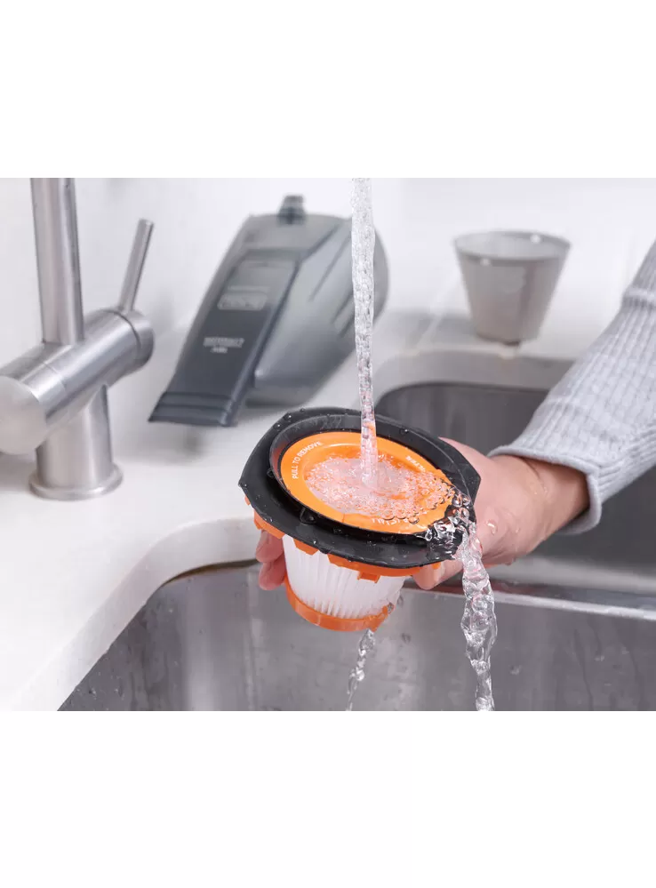 • Tento ruční akumulátorový vysavač se snadno čistí, je vybaven snadno vyjímatelným pracím předfiltrem a hlavním filtrem, takže váš vysavač je stále ve špičkové kondici a zachovává si maximální výkonnost. Nástavec na štěrbiny má svůj integrovaný úložný prostor, a proto jej nikdy neztratíte