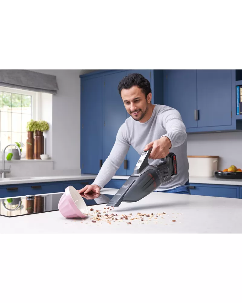18V POWER CONNECT Dustbuster® BCHV001C1 je součástí rodiny akumulátorových výrobků BLACK+DECKER® 18 V Li-Ion POWER CONNECT a poskytuje neustále vysoký výkon a dlouhou výdrž při každodenním úklidu domácnosti.