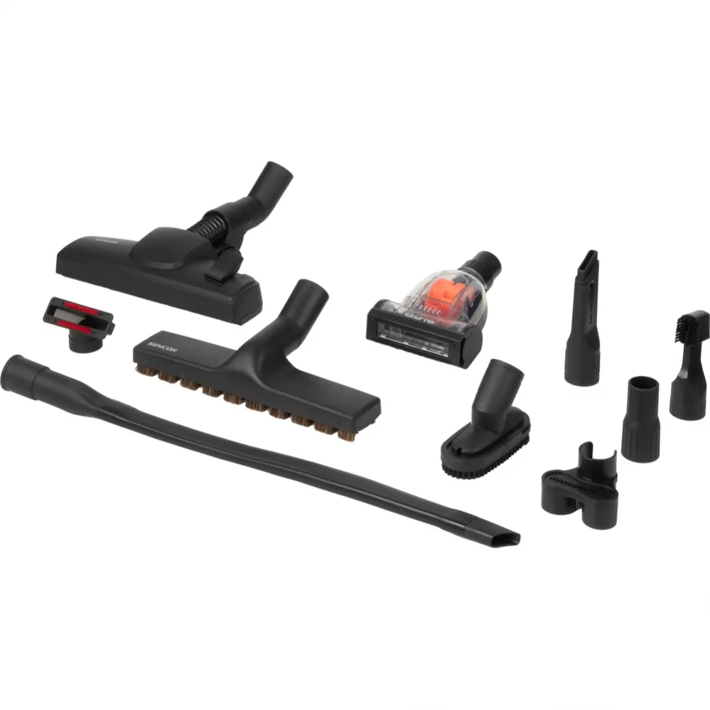• Dodávané příslušenství: univerzální podlahová hubice, štěrbinová hubice, kartáčová hubice, hubice na čalounění, dlouhá ohebná štěrbinová hubice, mini turbo kartáč, hubice na tvrdé podlahy