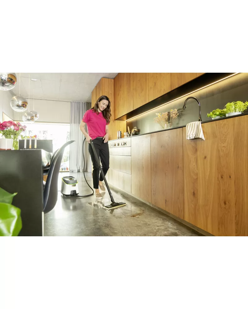 • Parní čistič SC 4 Deluxe EasyFix dosahuje vysokého tlaku až 4 bary, umožňuje práci bez přerušení (kdykoliv doplnitelná nádrž na vodu) a nezastaví ho ani odolné nečistoty.