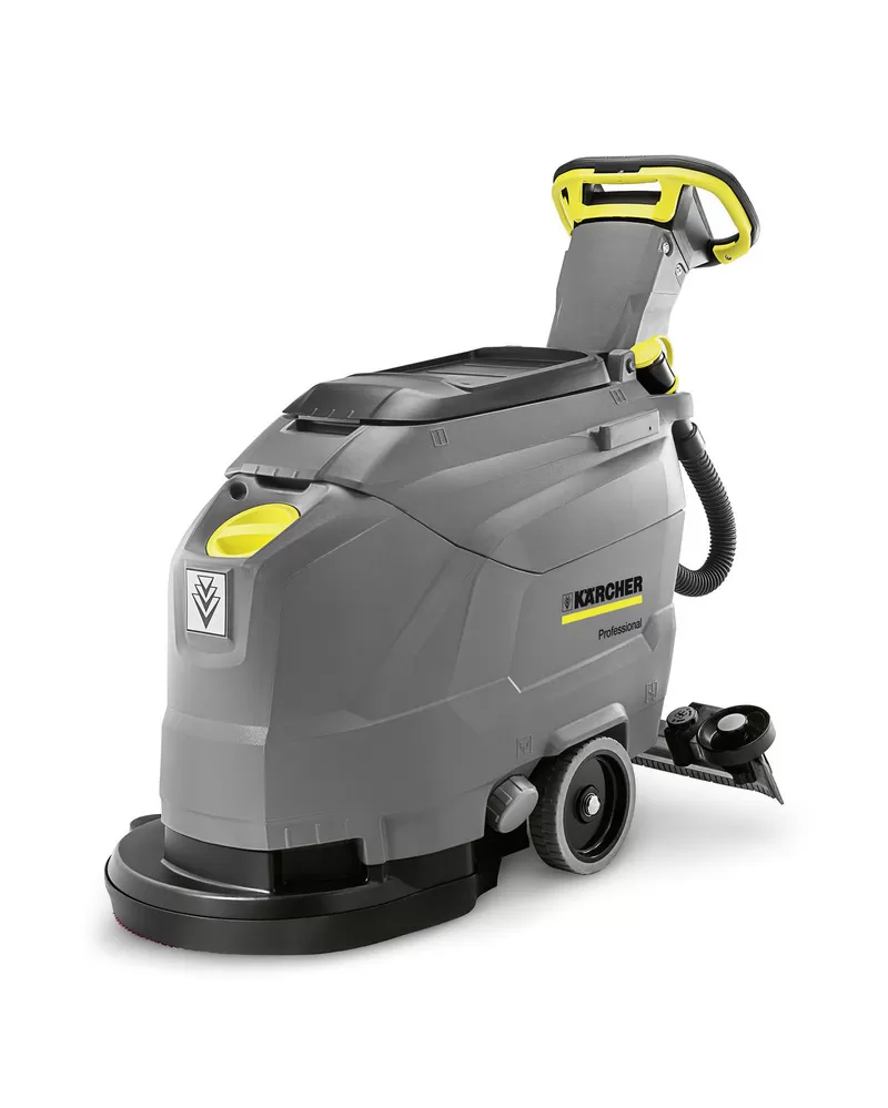 • To jsou podstatné vlastnosti ručně vedeného, bateriově poháněného podlahového mycího stroje Kärcher BD 43/25 C s odsáváním a kotoučovou technikou, pracovní šířkou 43 cm a objemem nádrže 25 litrů.