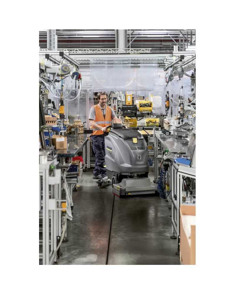 • Ručně vedený podlahový mycí stroj s odsáváním B 60 W Bp s pohonem pojezdu a systémem KIK nabízí komfort i snadnou a bezpečnou manipulaci.