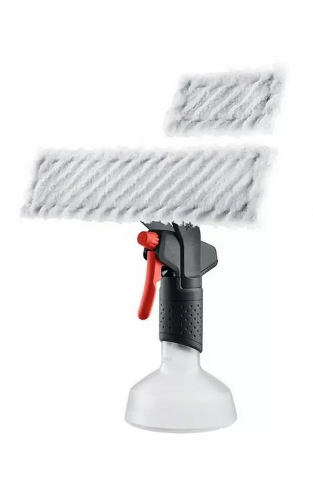 V první fázi se kapalina rozprašuje se zásobníku 300 ml pomocí integrovaného držáku s odnímatelnou látkou z mikrovláken. Je vybaven dvěma textilními čelistmi o rozměrech 276 × 55 mm a 110 × 50 mm pro použití v těsných prostorech. Stříkání speciální kapaliny pro zrcadla a zamlžování pomocí houbičky, zajišťuje uvolnění i těch nejtěžších nečistot. Druhý stupeň čištění jednoduše zapne vákuové čerpadlo Bosch GlassVac a špinavý povlak se nasává.