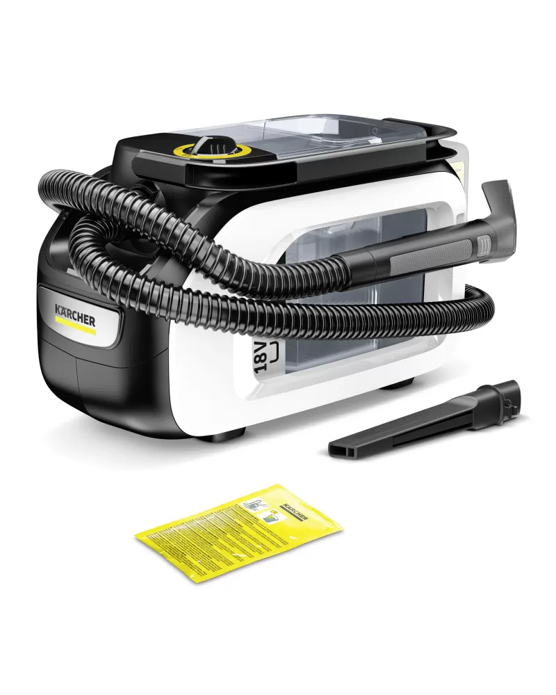 • Díky kompaktnímu designu je zařízení nejen praktické, ale lze jej také používat, když není poblíž žádná elektrická zásuvka, a to díky 18V baterii Kärcher Battery Power (není součástí dodávky). Díky tomu lze interiér vozidla vyčistit za pouhých 12 až 24 minut.