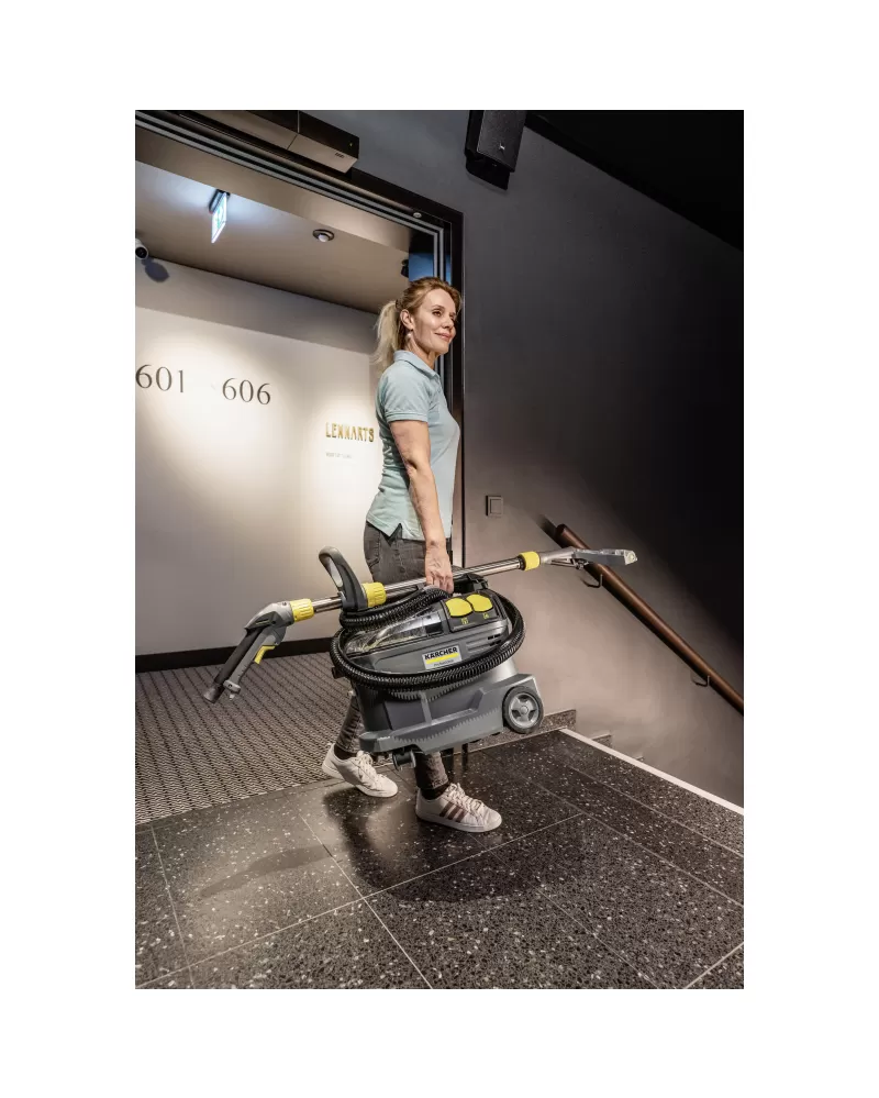 Integrovaný úložný prostor pro hubici na čalounění a hubici na koberce