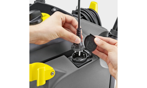 Integrovaná elektrická zásuvka umožňuje flexibilní využití PW 30/1 bez přídavného zdroje energie. Zásuvka je v době mimo provoz účinně chráněna automaticky se uzavírající klapkou. PW 30/1 zvyšuje plošný výkon, čisticí vlas koberce rotačním kartáčem a narovná jej