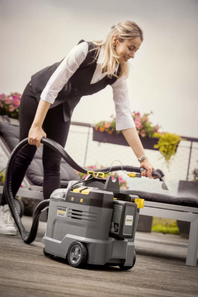 • Jediný svého druhu na světě, s robustní odolností a flexibilitou: Náš baterivoý extraktor Puzzi 9/1 Bp. Jako jediný profesionální extrakční stroj na trhu napájený z baterie, tento stroj vždy zaujme svým výjimečným výkonem a maximální svobodou pohybu při čištění čalounění a textilních ploch v jakémkoli odvětví, ať už jde o hotely nebo pohostinství, servis vozidel nebo čištění budov. Navzdory svému výkonu je tenti stroj extrémně tichý, takže je ideální pro použití ve veřejných prostorách; navíc díky ergonomicky tvarované rukojeti jej lze snadno přenášet jednou rukou. Pro dosažení nejlepších výsledků čištění do hloubky vláken je čisticí roztok natlakován a nastříkán hluboko do textilních vláken a poté nasáván zpět spolu s uvolněnými nečistotami. Standardně dodáváno: Extra krátká hubice na čalounění, nástřiková hadice, nádoba 2 v 1 na čerstvou a špinavou vodu, integrovaný úložný prostor pro příslušenství a mnoho dalšího. Při objednávání této verze stroje mějte na paměti, že výkonná 36 V baterie Kärcher Battery Power+ a příslušnou rychlonabíječku je nutné objednat samostatně.