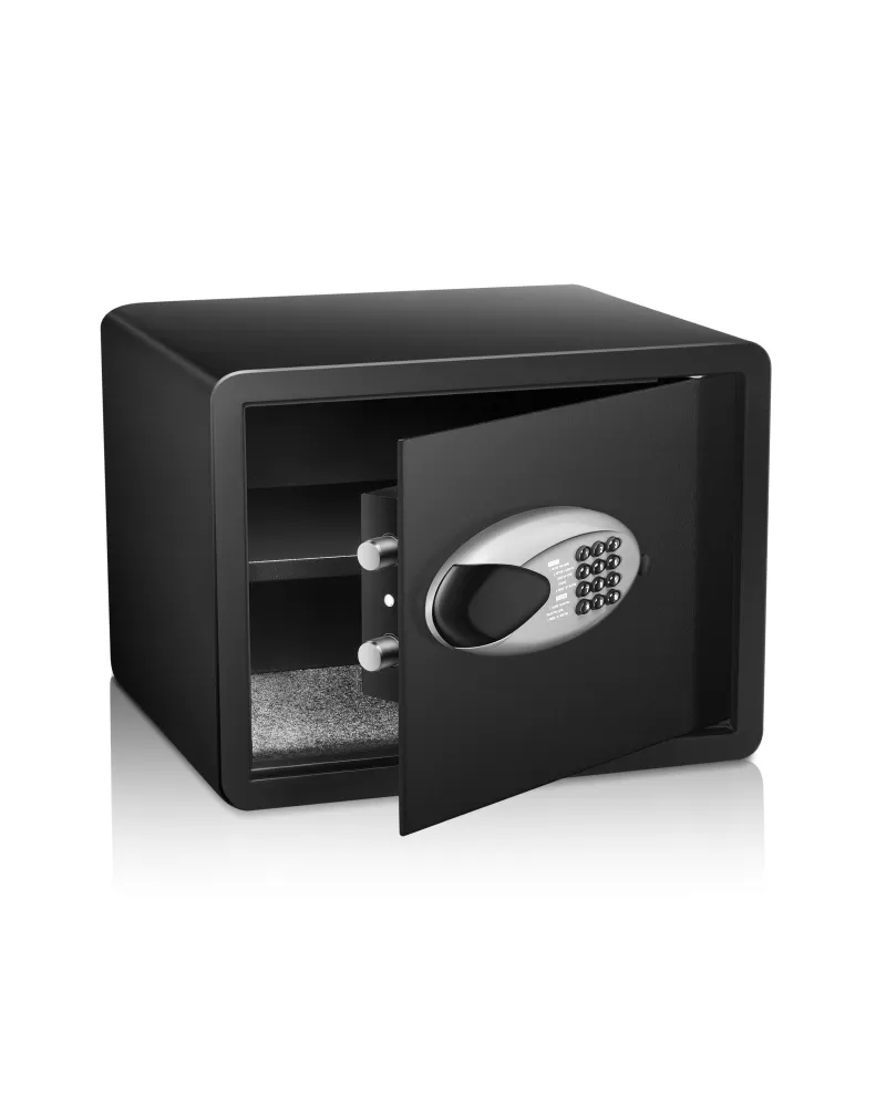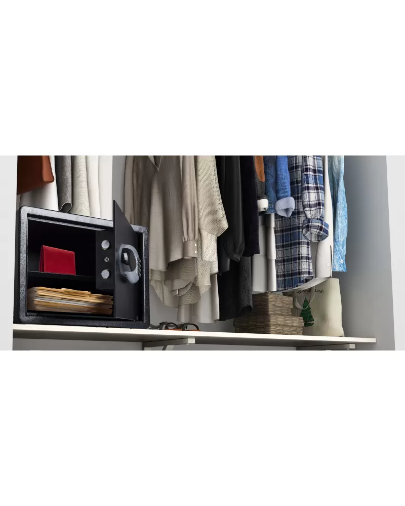 • Pro bezpečné uzavření je trezor opatřen digitálním zámkem s číselnou kombinací a informačním LED displejem.