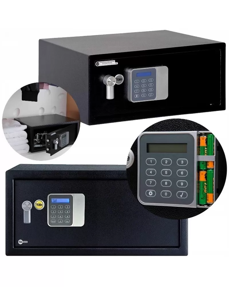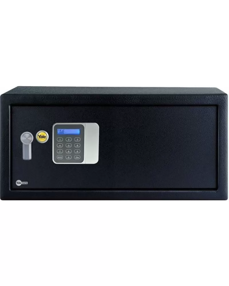 • Do trezoru Yale o objemu 20,5 l uschováte své největší cennosti. Bezpečnostní PIN zadáváte na klávesnici, u níž je jasný LCD displej. V případě, že ztratíte či zapomenete PIN kód, je možné elektronický zámek překonat mechanicky, a to pomocí bezpečnostního klíče, který je součástí sejfu. YALE High Security Fingerprint Safe Laptop skutečně dokonale ochrání notebook i důležité dokumenty.