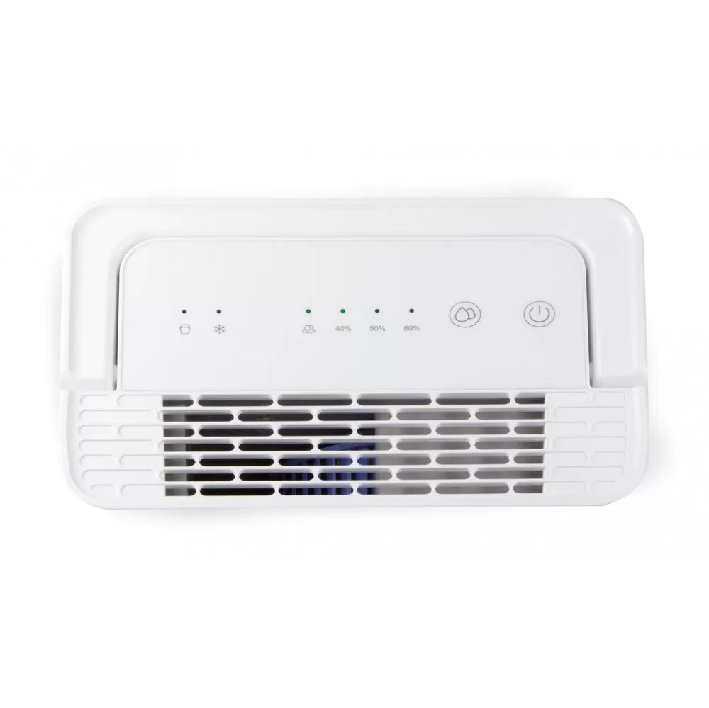 Kompaktní snadno přenosný odvlhčovač s dostatečným výkonem pro odvlhčení vzduchu v běžně velké místnosti. Odlvhčovač umí sám udržovat ideální vlhkost v místnosti a také se umí sám spustit a pokračovat po výpadku proudu. Nemusíte se ani bát, že by mu přetekla nádržka s kondenzovanou vodou - sám vás na to upozorní a vypne se, dokud vodu nevylijete.