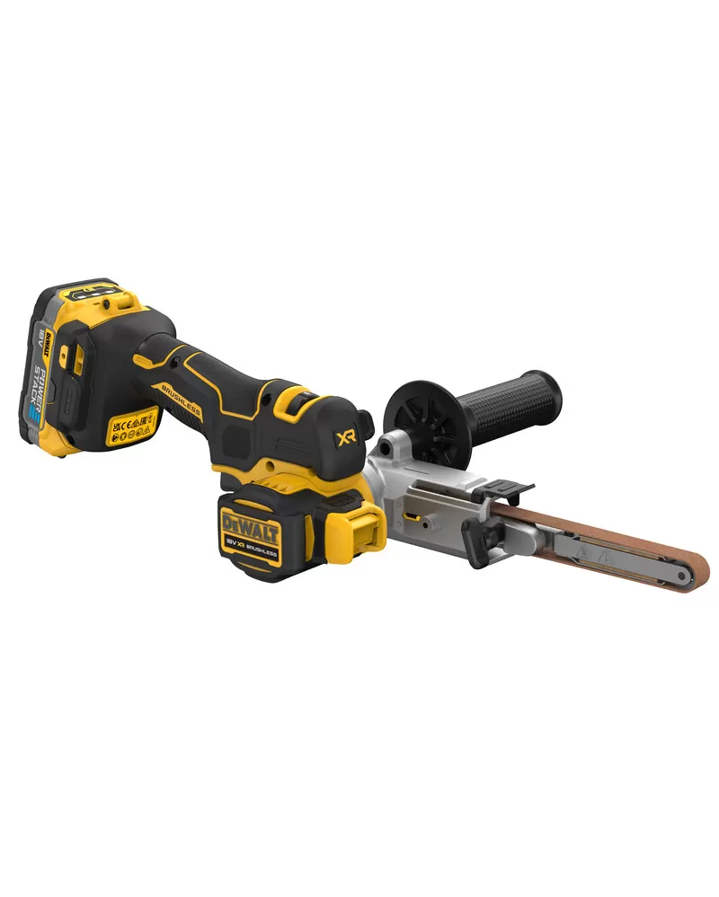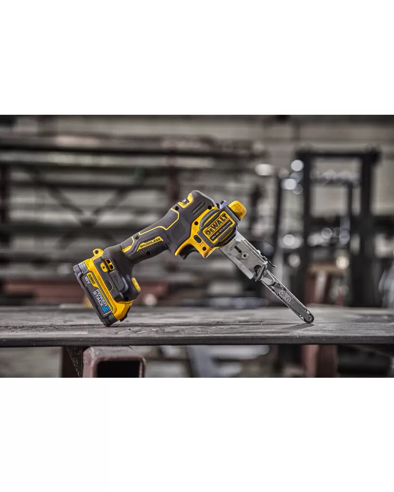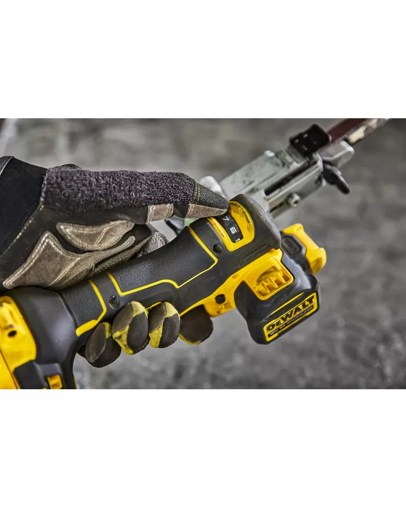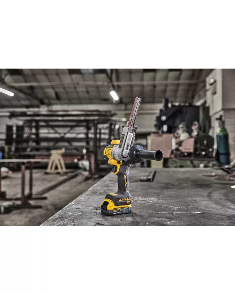 • Pásový pilník DCM200 je vybaven otočnou LED k osvětlení pracoviště a funkcí výměny pásu bez použití dalšího nářadí, která uživateli poskytuje vyšší míru pohodlí, mobility i všestrannosti.
