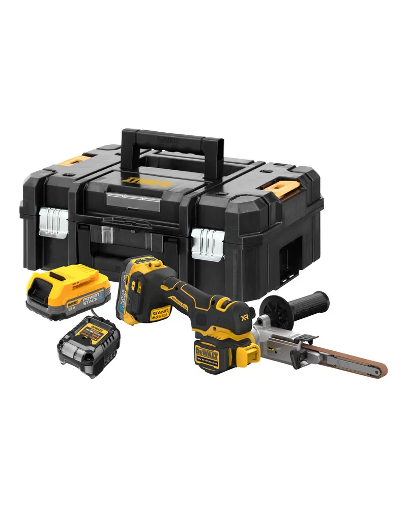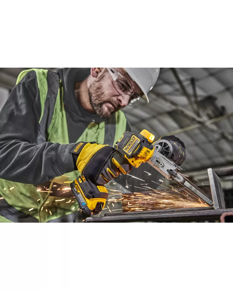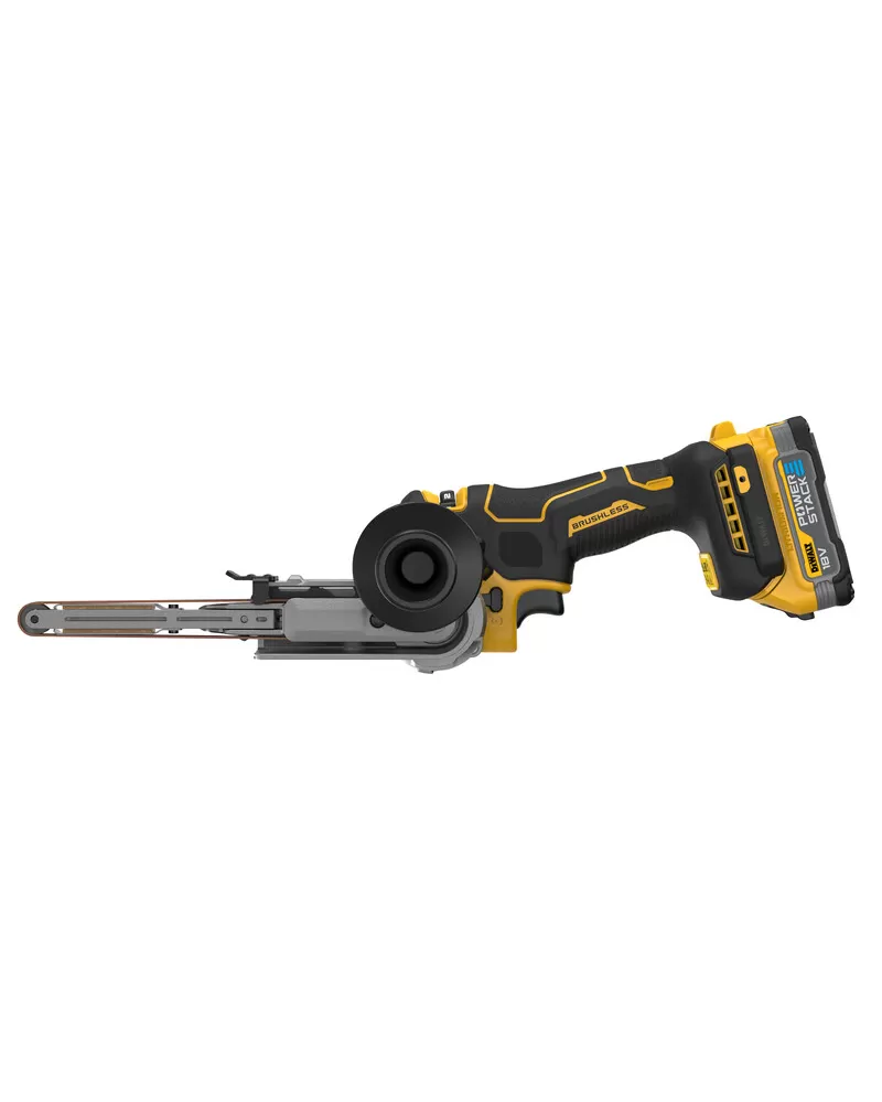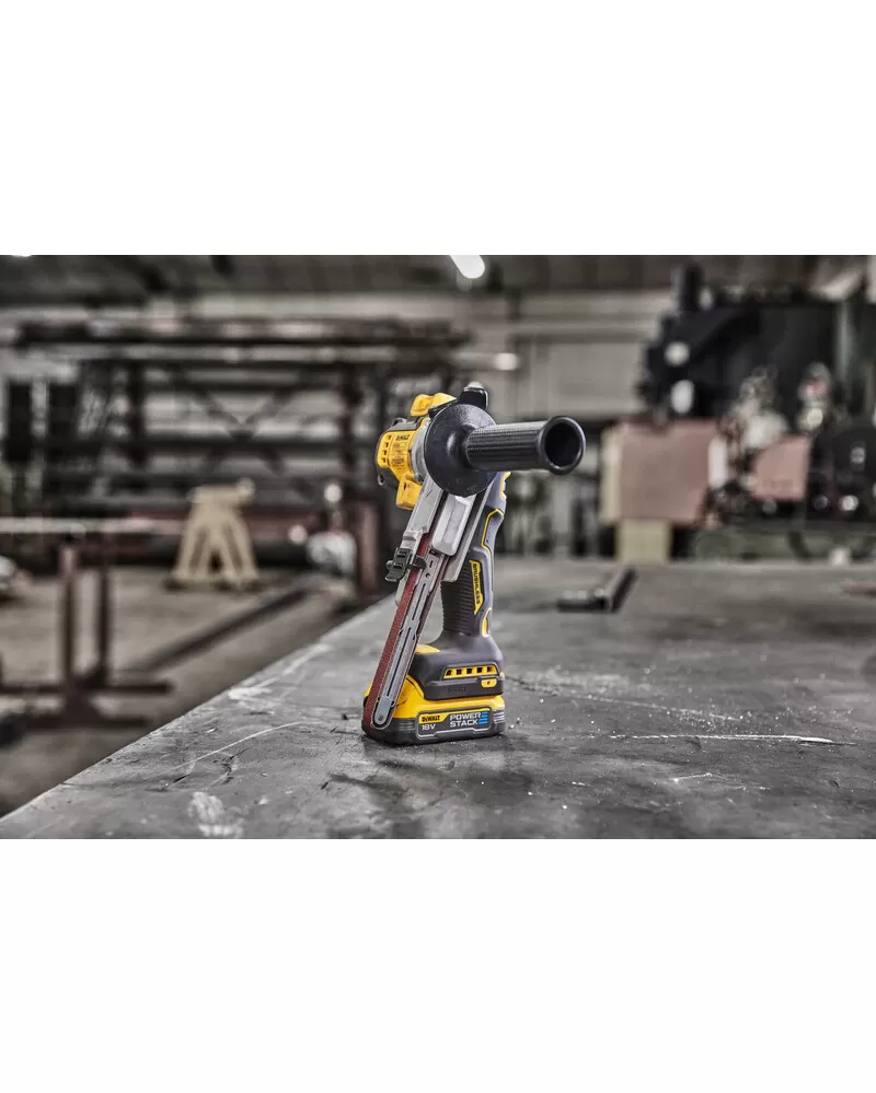 • Pásový pilník DCM200 je vybaven otočnou LED k osvětlení pracoviště a funkcí výměny pásu bez použití dalšího nářadí, která uživateli poskytuje vyšší míru pohodlí, mobility i všestrannosti.