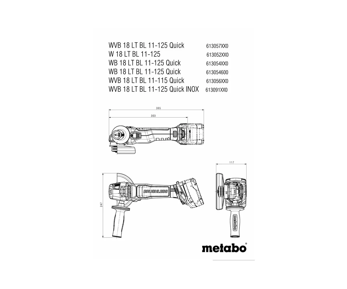 Aku úhlová bruska 18V bez aku WVB 18 LT BL 11-125 Q Metabo 613057850
