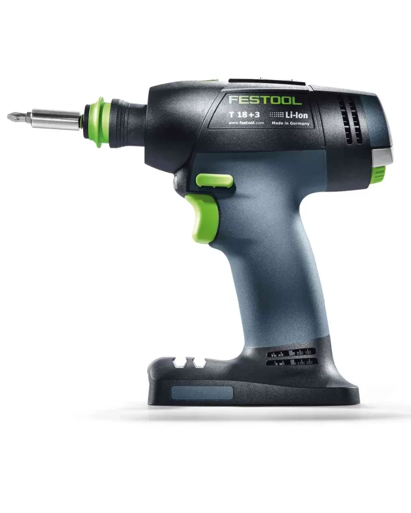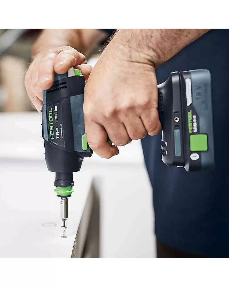 Aku vrtací šroubovák Festool T 18+3-Basic s plně elektronicky nastavitelným krouticím momentem a rychlovýměnným systémem CENTROTEC.