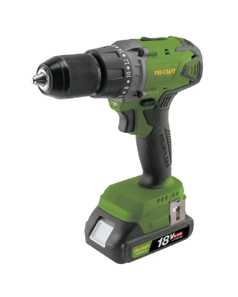 Bezuhlíkový aku vrtací šroubovák 18V 2x4,0Ah PROCRAFT PA18BL