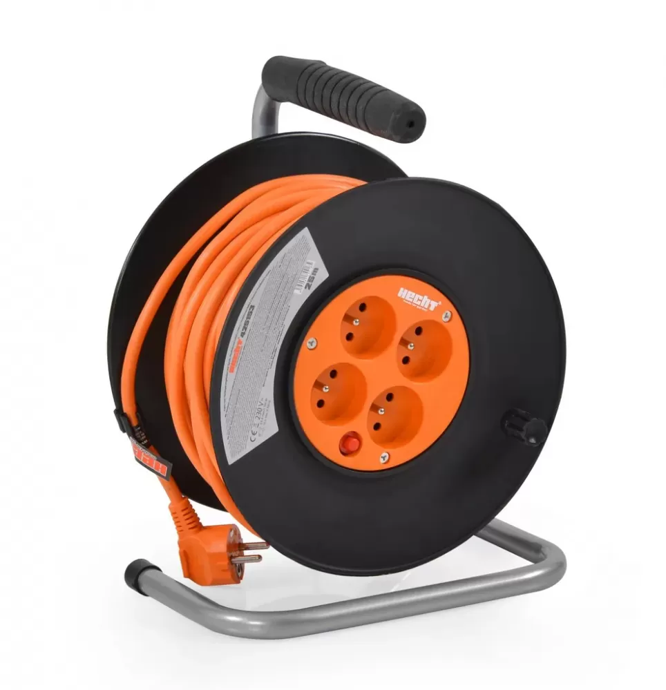 Prodlužovací kabel 230 V / 50 Hz na cívce dlouhý 20 m, průřez vodičů je 3 x 1,5 mm. Provedení v transparentní oranžové barvě, je proto dobře viditelný v trávě, což podstatně znižuje riziko náhodného poškození. Odvíjena je vidlice, na bubnu jsou osazeny 4 zásuvky. Je proto vhodný pokud je třeba napájet několik zařízení na jednom místě současně. Pro připojení některé zahradní techniky ovšem bude třeba použití dalšího kabelu. Maximální zatížení rozmotaného kabelu je 16 A. Pokud kabel používáte částečně smotaný, maximální zatížení se díky indukci kabelu snižuje na 5 A.