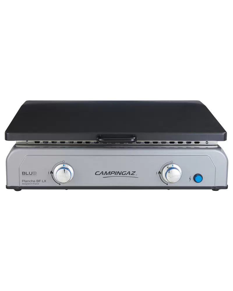 Plynový gril CAMPINGAZ Plancha Blue Flame LX je přenosný gril nové generace z vylepšených materiálů a patentovanou technologií hořáků Blue Flame, která zajišťuje rovnoměrné rozložení teploty po celé grilovací ploše