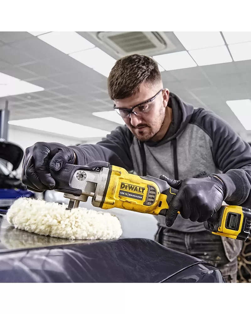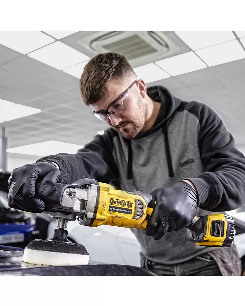 Aku rotační leštička 18V bez aku DeWALT DCM849N s regulací otáček a ergonomickou rukojetí pro pohodlnou práci.