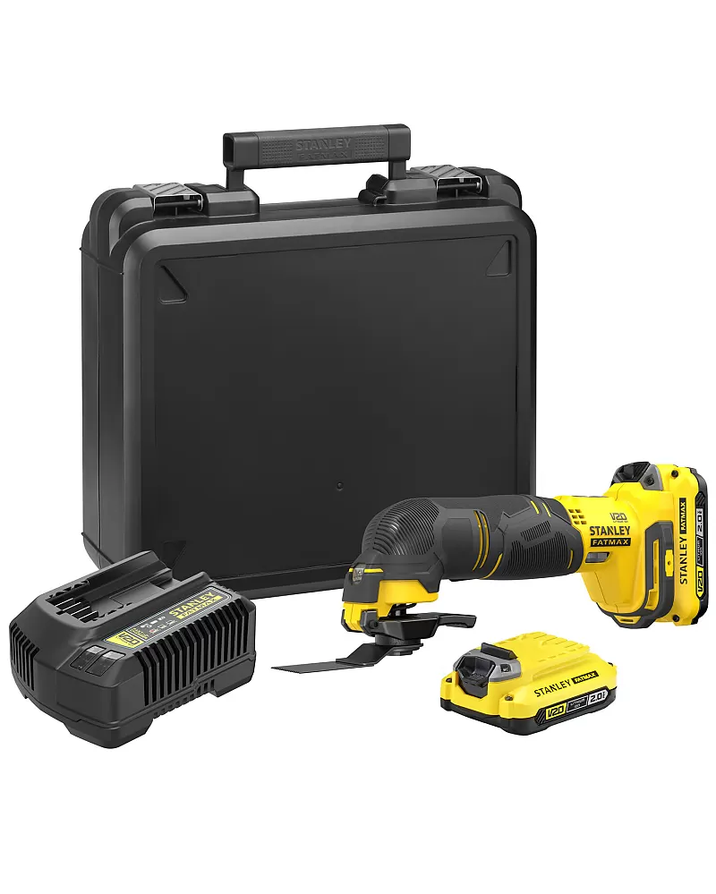 Aku oscilační bruska V20 2x2,0Ah Stanley FatMax SFMCE500D2K se sadou příslušenství a elektronickou regulací počtu kmitů.