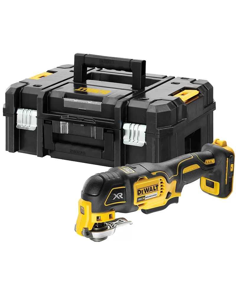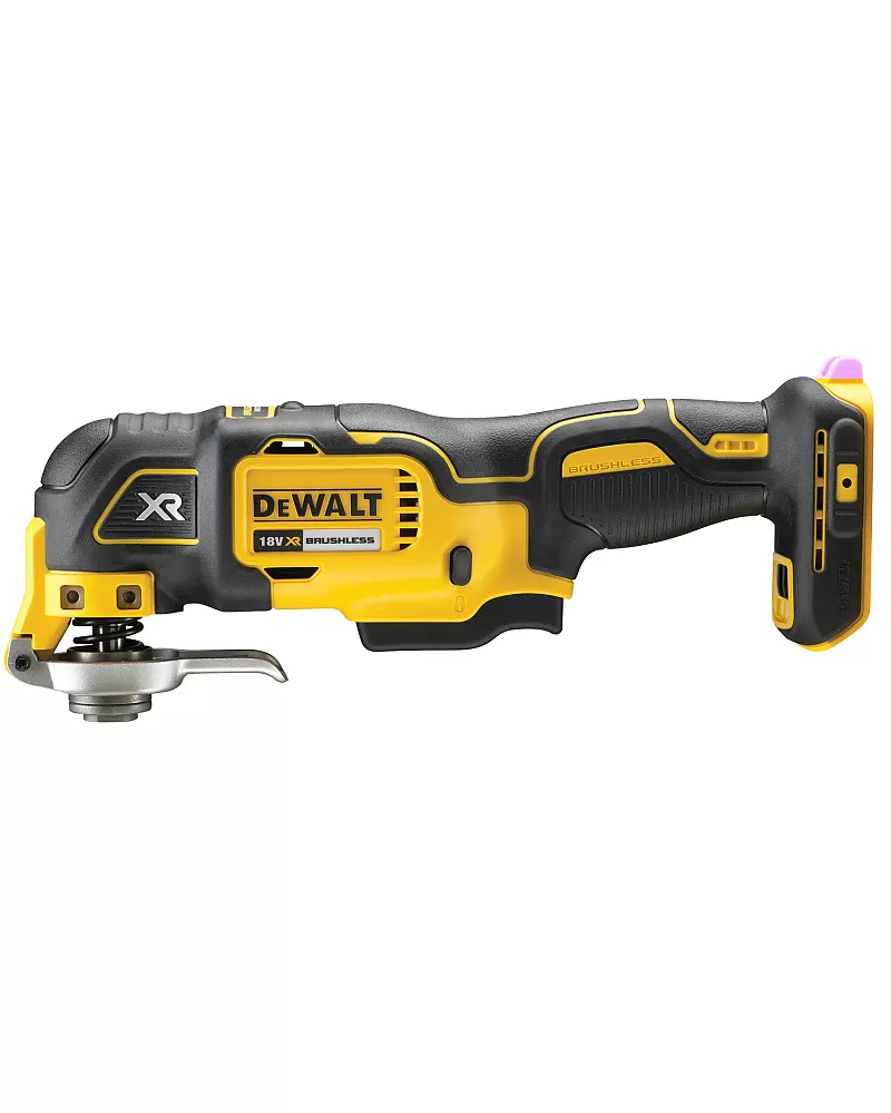 Aku oscilační multibruska 18V bez aku DeWALT DCS356NT se systémem rychlé výměny nástrojů bez nářadí.