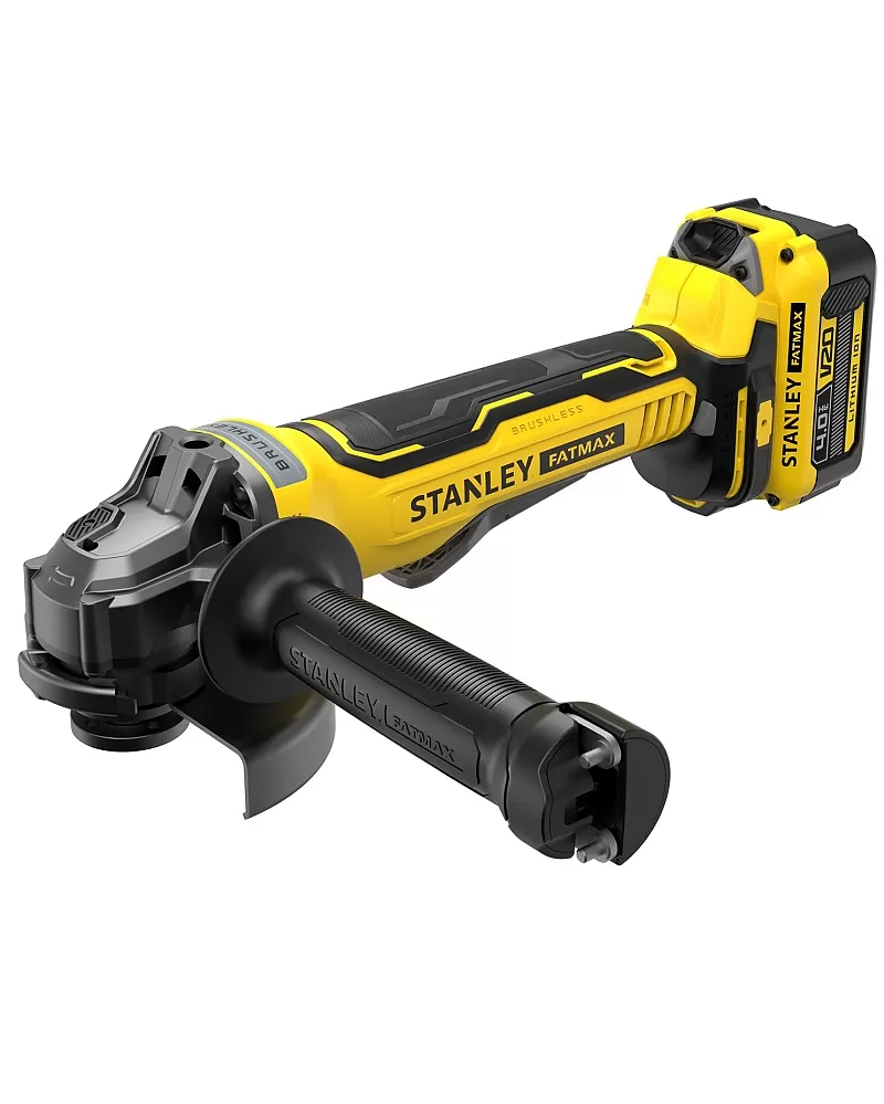 Aku úhlová bruska 125mm V20 2x4,0Ah Stanley FatMax SFMCG700M2K s bezuhlíkovým motorem s výkonem 875W pro rychlejší řezy.