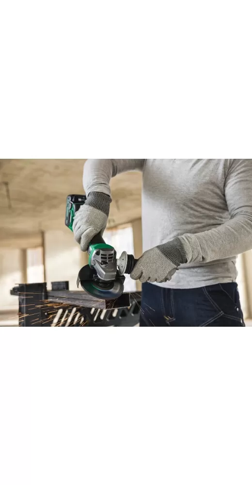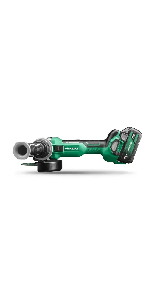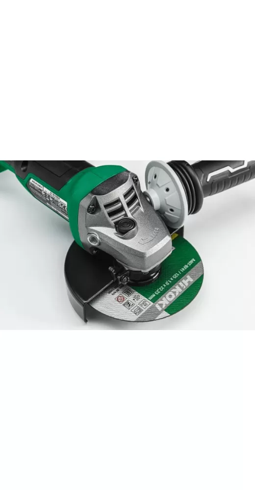Aku úhlová bruska HiKOKI G1813DAWQZ, Li-ion 18 V / 2x 5,0 Ah, otáčky 8.000 min–1, průměr kotouče Ø 125 mm, hmotnost 2,4 kg.