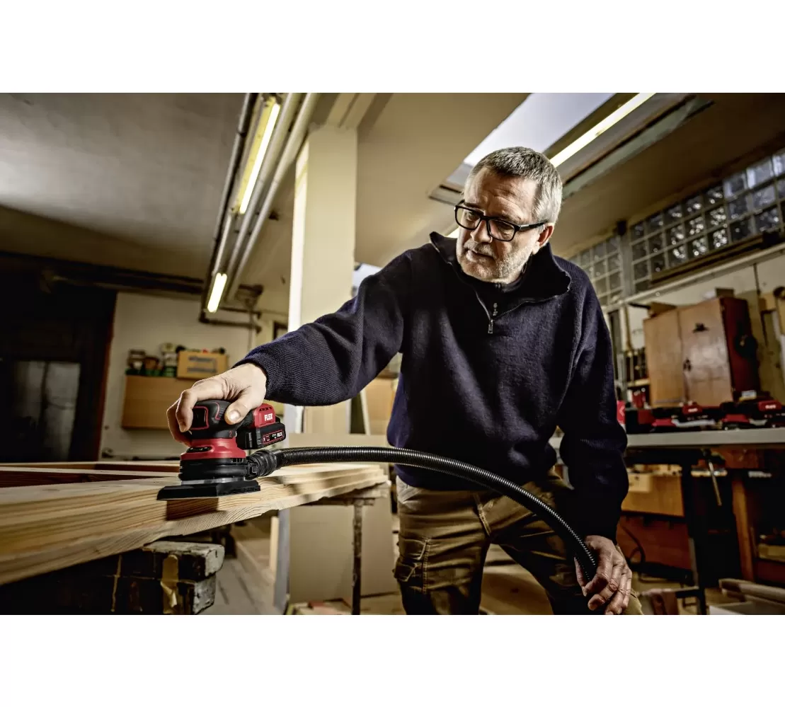 • Lehká, kompaktní vibrační bruska do jedné ruky, vysoce ergonomická s omezenými vibracemi speciálním vyvažováním pro neúnavnou a klouby šetřící práci