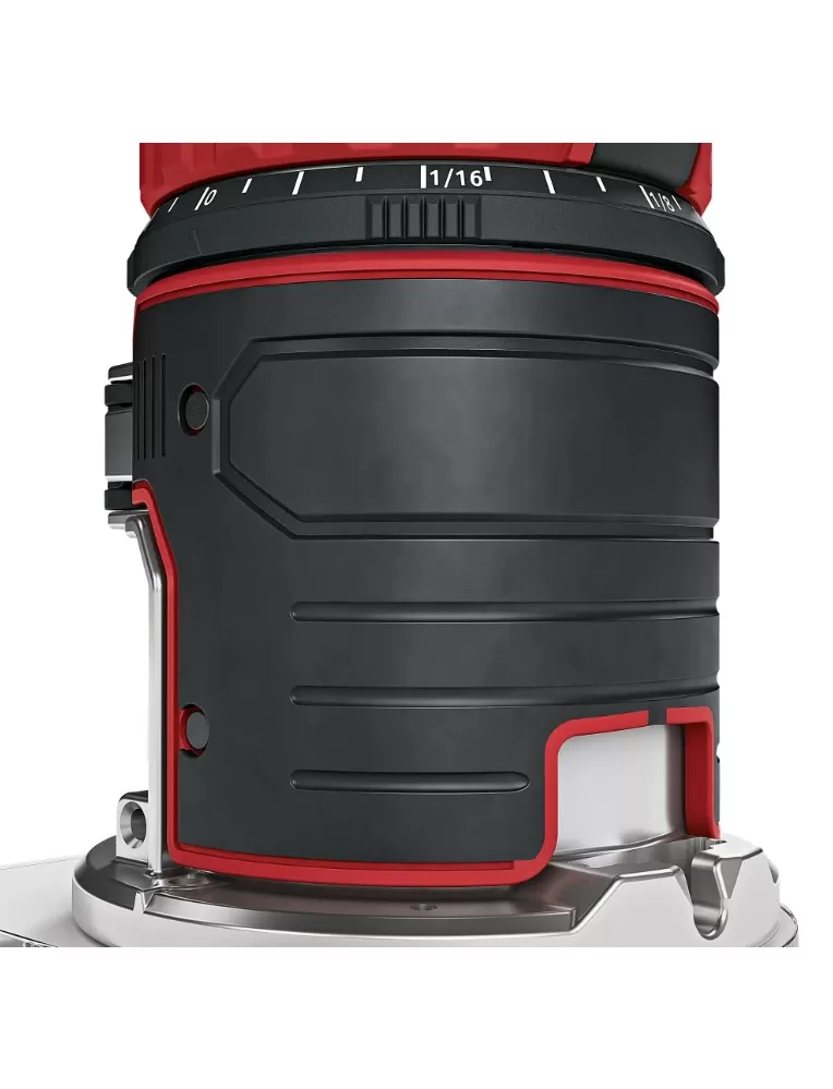 • S nulovou funkcí stupnice, nastavení hloubky frézování přes revolverový doraz a plynulé jemné nastavení hloubky frézování pomocí otočného kroužku