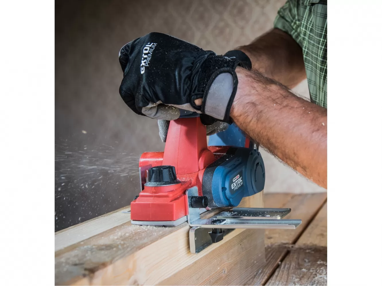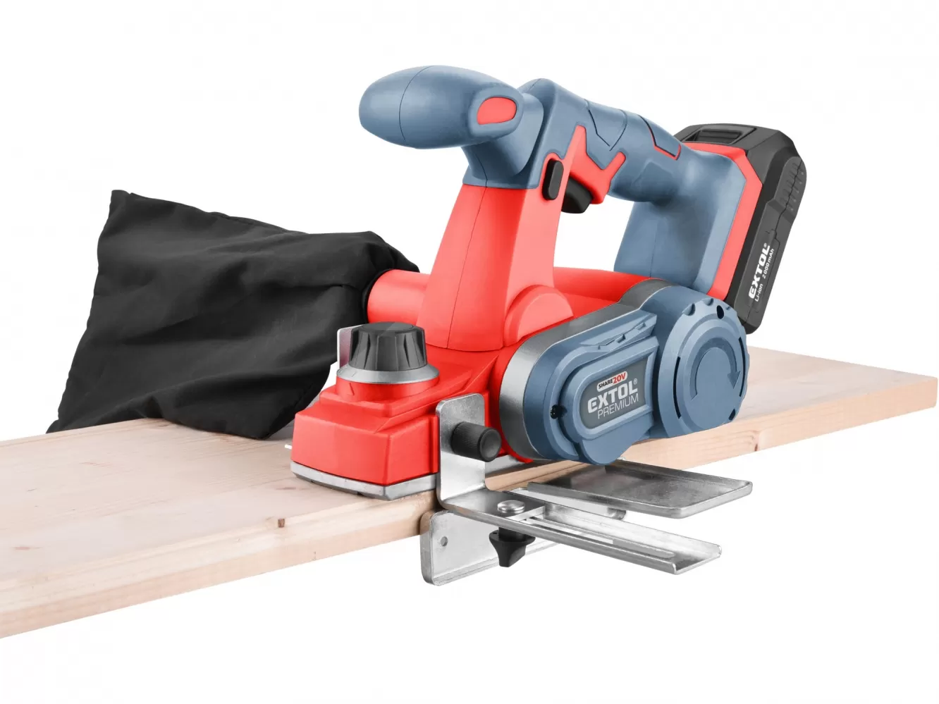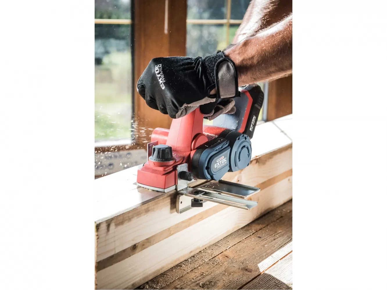 • Aku hoblík Extol Premium kombinuje rychlost a výkonnost elektrického hoblíku s pohodlím akumulátorového nářadí.