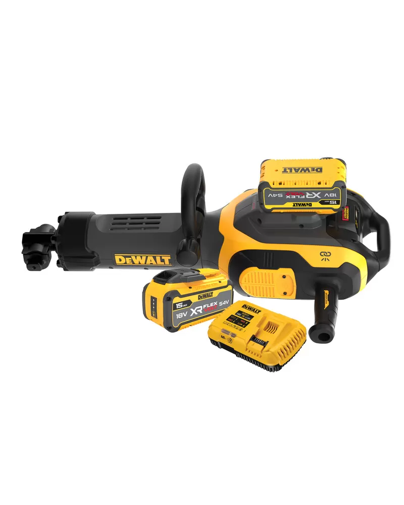 • Bezuhlíkový motor DEWALT 54V a akumulátor s vysokou kapacitou 15 Ah poskytují energii rázu, která dosahuje 41 J a umožňuje tak zvládání nejnáročnějších demoličních prací na staveništích.