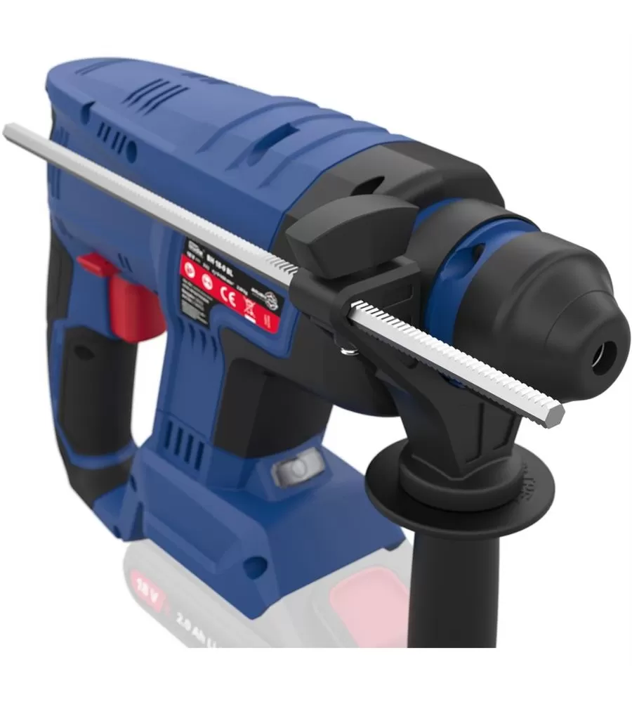 • Kovový doraz pro nastavení hloubky vrtání, upínání nástrojů SDS plus