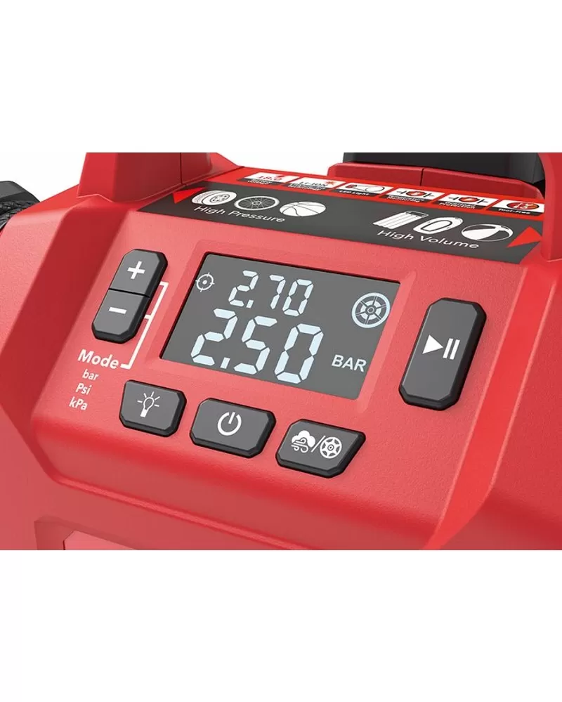 • Předvolba hodnoty tlaku s automatickým vypnutím po dosažení požadovaného tlaku