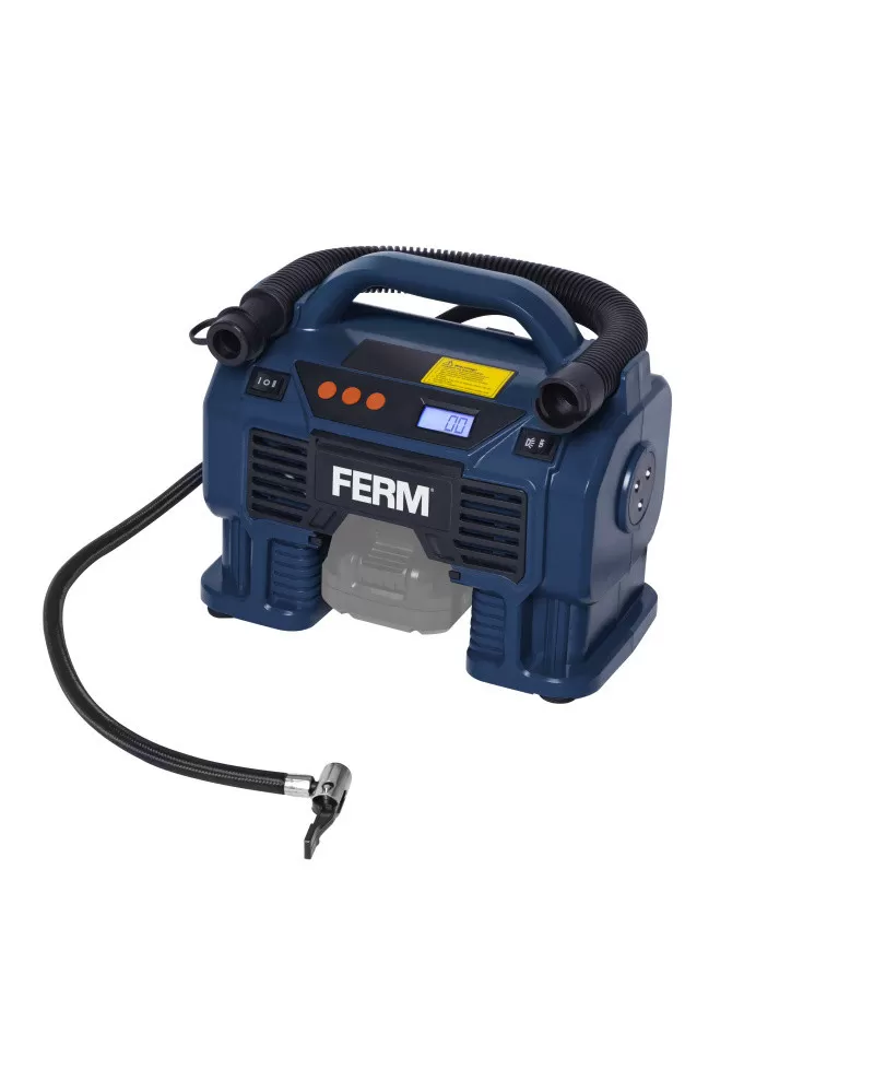 • Aku kompresor Ferm CRM1054 je určen k huštění pneumatik (například automobilu nebo motocyklu), míčů, nafukovacích matrací a dalších malých nafukovacích předmětů. Toto zařízení je také určeno pro nafukování a vyfukování předmětů s velkým objemem malým tlakem vzduchu, jako jsou například nafukovací matrace, rafty a hračky do bázénů, není však určeno k nepřetržitému provozu delším než 10 minut.