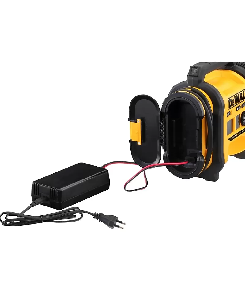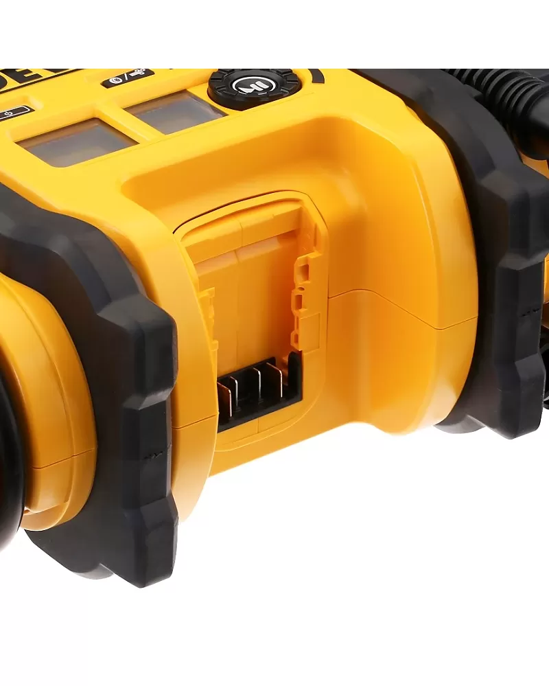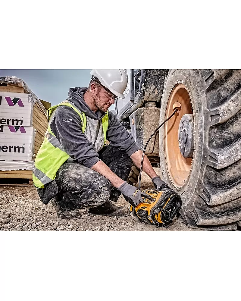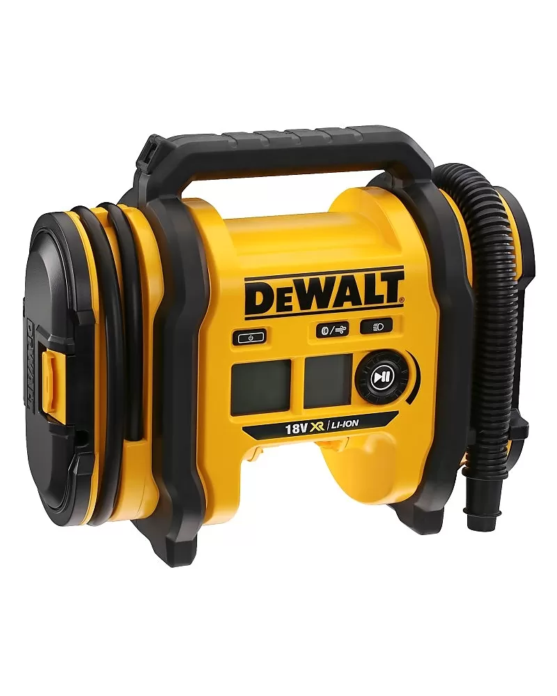 Aku nafukovací kompresor 18V DeWALT DCC018N s možností napájení ze sítě i z akumulátoru a výstupním tlakem až 11 Bar.