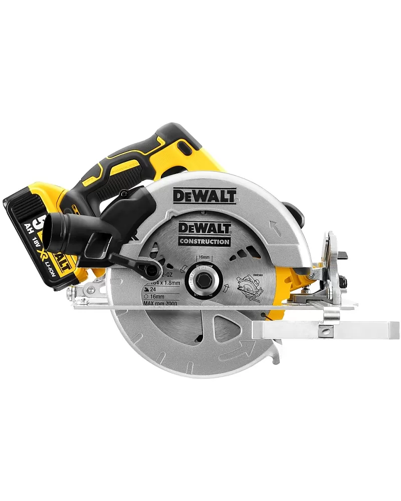 Aku bezuhlíková kotoučová pila 18V 2x5,0Ah DeWALT DCS570P2 pro provádění základních podélných, příčných a šikmých řezů dřeva a jiných konstrukčních materiálů.