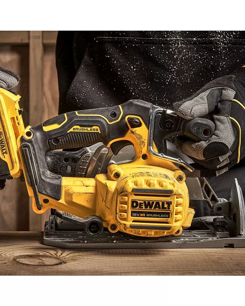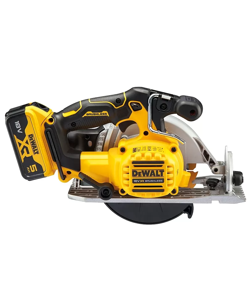 Aku kotoučová pila 165mm 18V 2x5,0Ah DeWALT DCS565P2 s nastavením úhlu šikmého řezu do 50°a maximální hloubkou řezu 55mm.