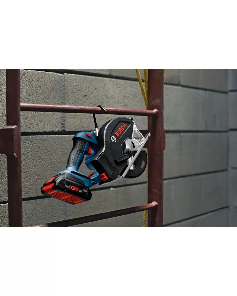 GKM 18V-50 Professional je vybaven hákem a speciálním pilovým kotoučem „Standard for Steel“, který je optimalizován pro akumulátorové pily s cílem maximalizovat výdrž akumulátoru.