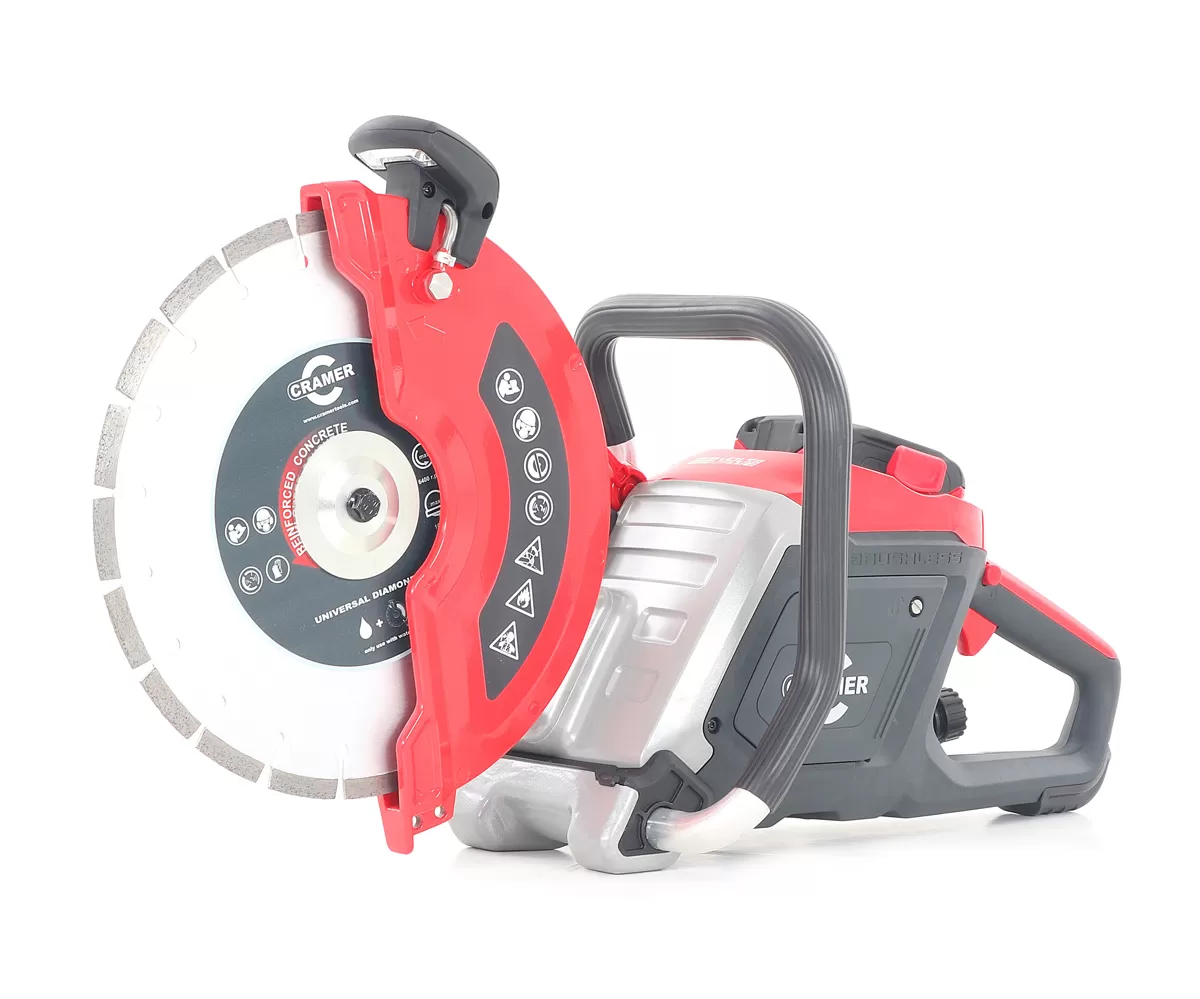 • Cramer 82PC350 se může pochlubit velmi silným motorem o výkonu 4,3 kW a krouticím momentem 12,8 Nm, což odpovídá benzínovému stroji o objemu až 70 ccm. Výsledkem je perfektní poměr výkonu a hmotnosti pro profesionální použití. Kotouč o průměru 350mm dokáže řezat do hloubky 125mm s vysokou rychlostí kotouče až 93 m/s s vlastností rychlého a čistého řezu. Model 82PC350 lze použít od jednoduchých úprav až po náročné řezy desek nebo ocelových plátů v náročných stavebních podmínkách.