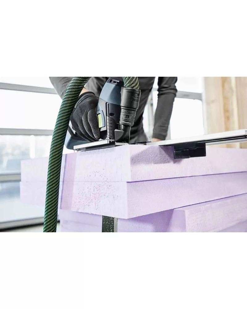 • Úhlově a rozměrově přesné řezy do pružných izolačních materiálů – v kombinaci s vodicí lištou a úhlovým dorazem FS-WA-ISC