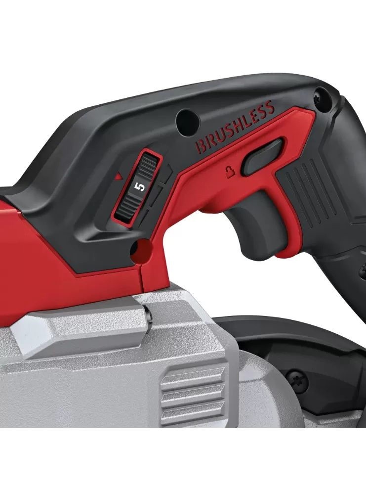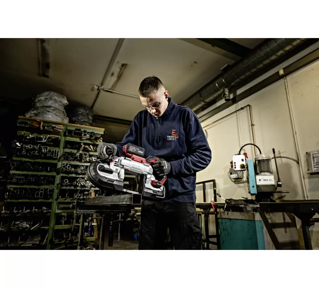 • Pásová pila je díky své konstrukci dokonale vyvážená, podpořená optimálním rozložením hmotnosti akumulátoru a motoru. Odlehčený stroj třídy 18 V