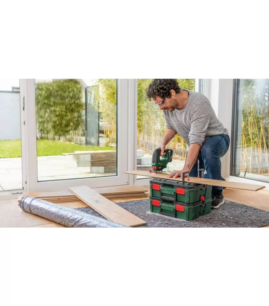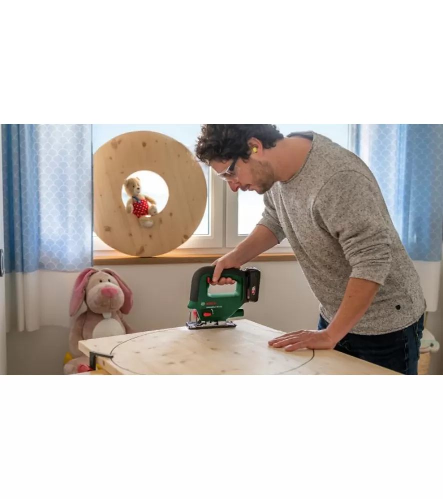• Provádí přímé a zaoblené řezy do dřevěných pracovních desek, parketových podlah a hliníkových profilů