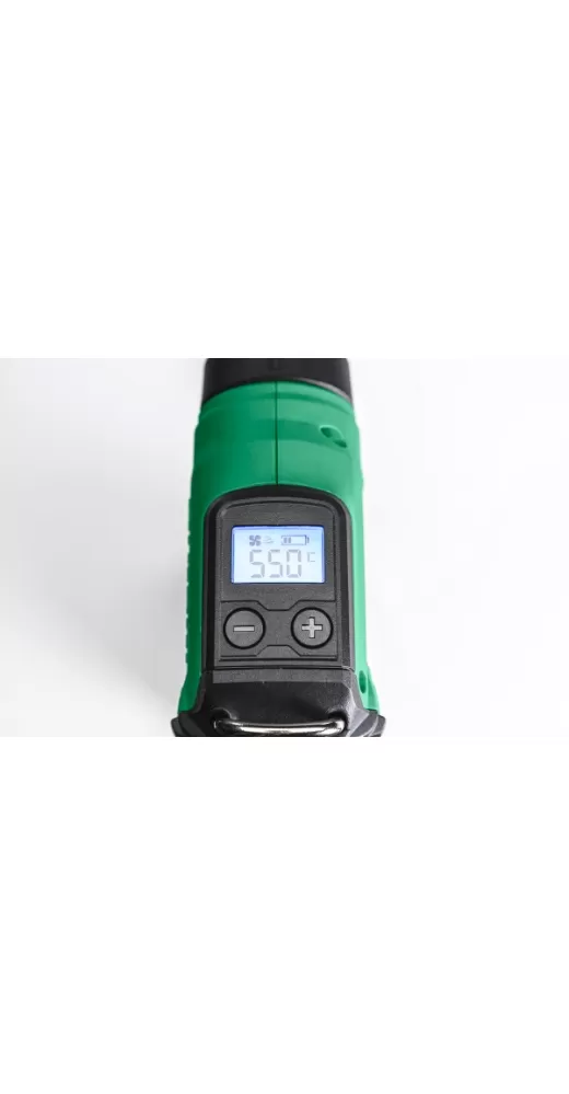 Aku horkovzdušná pistole HiKOKI RH18DAW2Z, 18 V Li-ion, teplota 30 - 550 °C, množství vzduchu 200 / 300 l/min, hmotnost 0,6 kg.