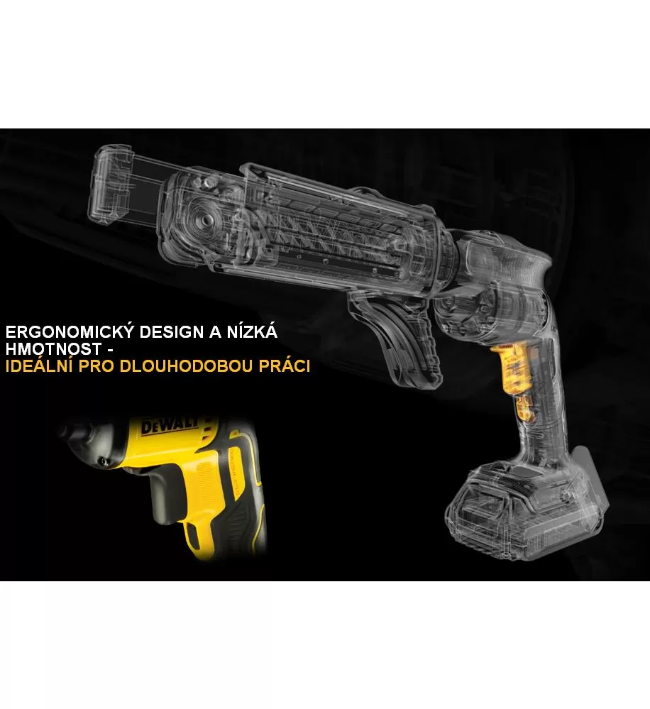 • Výkonný BEZUHLÍKOVÝ motor poskytující 4 400 ot./min zaručuje rychlé a efektivní šroubování vrutů a nabízí maximální provozní dobu a kompaktnost.