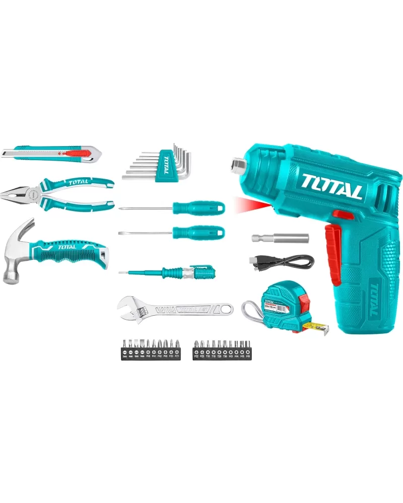 Aku šroubovák 4V se sadou nářadí 38ks Total THKTHP10386